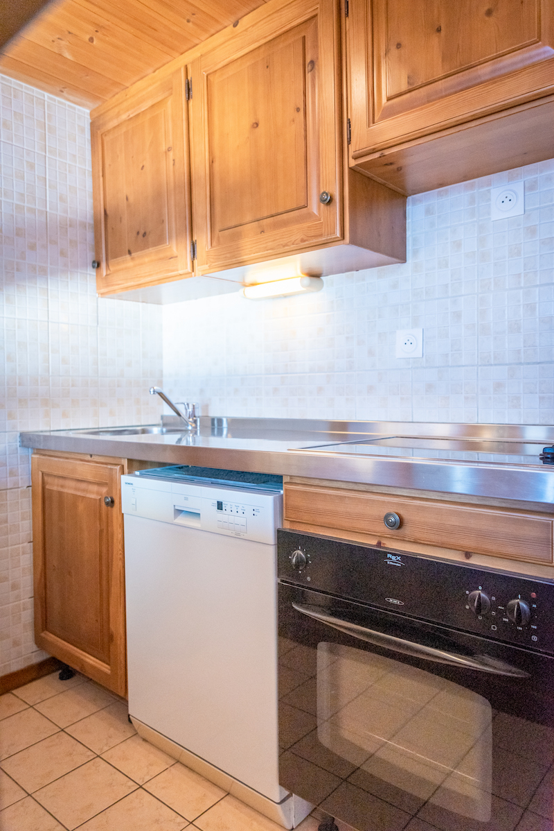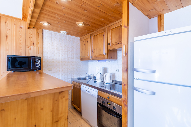 - Open kitchen with 4 vitro plates, oven, microwave, dishwasher, refrigerator with freezer part, kettle, coffee maker, cookware with mixer, toaster.