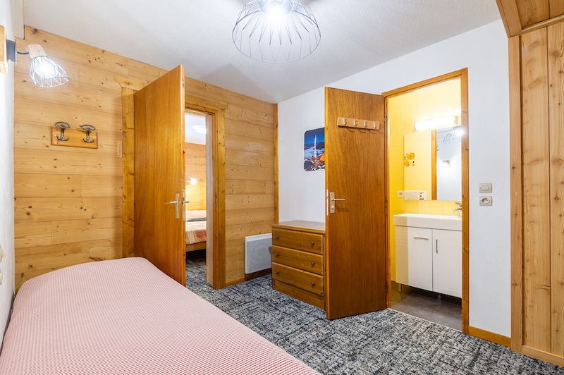 - A bedroom with 2 single beds 150 x 200 with a space for a baby cot