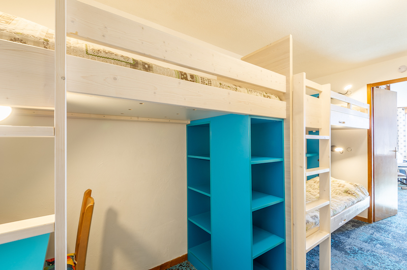 - A cabin with 2 single bunk beds 80×200 and a single bed in height 80 x 185 (possibility to put a baby bed underneath)