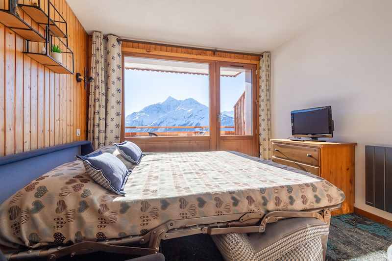 - A living room with a sofa bed sytème rapido 160×200 very good daily sleeping, real latex mattress of 17 cm thick.