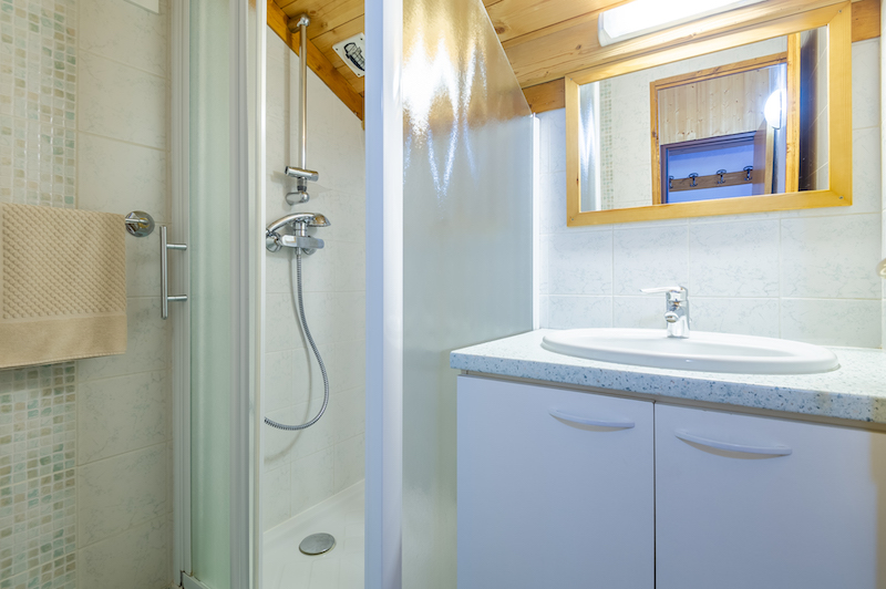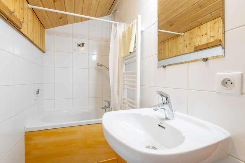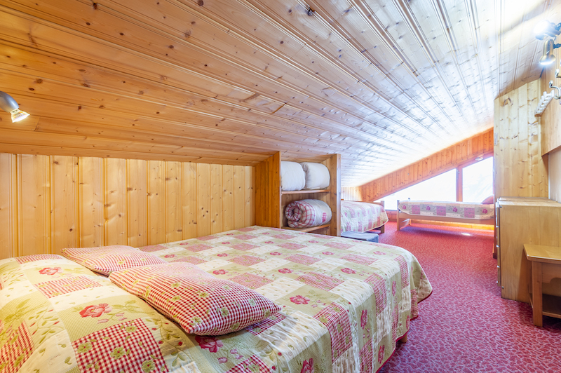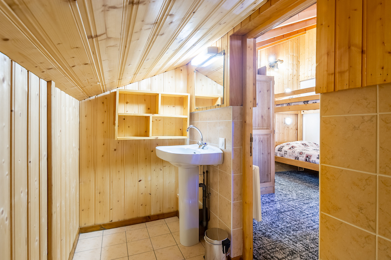 - Une chambre avec un lit double 150 x 200 et 2 lits simples 80 x 190 sous pente à l’étage